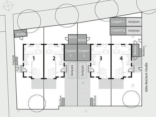 45 Eigentumswohnungen und eine Gewerbeeinheit finden auf dem Grundstück Platz. Die Erdgeschosswohnungen verfügen über großzügige Gartenflächen, alle anderen Wohnungen über Balkone und die Penthäuser ...