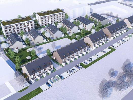 Insgesamt entstehen im Neubauquartier „Mühlengärten“ 26 neue Familienhäuser in schönster Lage. Hauptdarsteller im ersten Bauabschnitt waren sieben moderne Reihenhäuser und vier großzügige Doppelhaush...