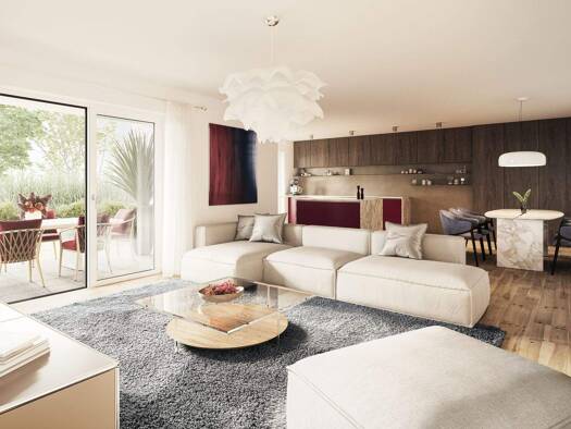 Modernes Raumprogramm und stadtnahe Lage im grünen Garten von Nürnberg\n\nDie modernen Wohnungen begrüßen Sie mit einem vielversprechenden Raumprogramm. Der offene Koch- und Essbereich bietet optimal...