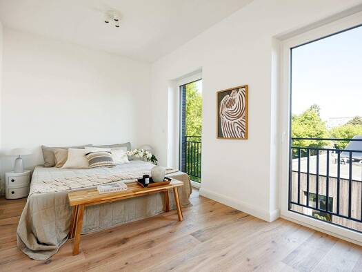 In bevorzugten Lagen Hamburgs bauen wir moderne, zwei-/dreieinhalbgeschossige Mehrfamilienhäuser. \nAlle Wohnungen verfügen über großzügige Terrassen oder Balkone. Die zum Wasser ausgerichteten Einhe...