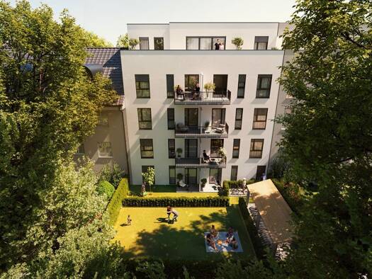 Die vier Neubauwohnungen vereinen Hochwertigkeit und Modernität bis ins kleinste Detail, kombiniert mit einem hohen Energiestandard. \nDas Grundstück mit seinen ca. 774 m² wurde gärtnerisch angelegt.