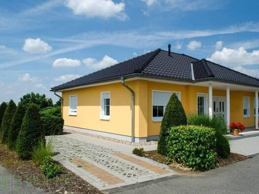 Der ca. 1976 errichtete Bungalow in Massivbauweise befindet sich in einem gepflegten Zustand und bietet ca. 102 m² Wohnfläche, verteilt auf vier Räume und eine verglaste Loggia/Wintergarten. Das Flac...