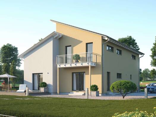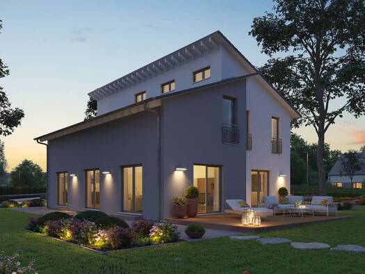 Das Einfamilienhaus LifeStyle 24.01 P von massa haus verbindet besondere Architektur mit einer ausgedehnten Wohnfläche. Mit einem offenen Koch-, Ess- und Wohnbereich, einer Galerie und drei Kinderzim...