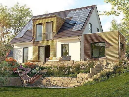 Bei diesem puristisch gestalteten Haus mit rund 182 m² Nettogrundfäche (n. DIN 277) unterstützen die flexiblen Grundrisse das Wohnen nach eigenen Vorstellungen. Optional mit spannenden Architektur-Ex...