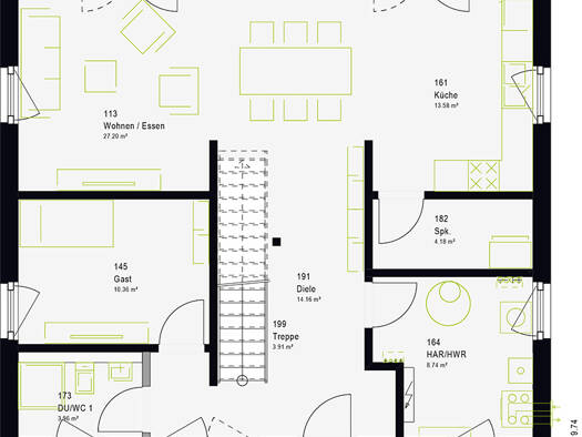 Das Flair 113 ist nicht ohne Grund das meistgekaufte Town & Country Haus. Es bietet alles, was ein Massivhaus gemütlich macht. Im Erdgeschoss betreten Sie ein geräumiges Wohn- und Esszimmer, eine...