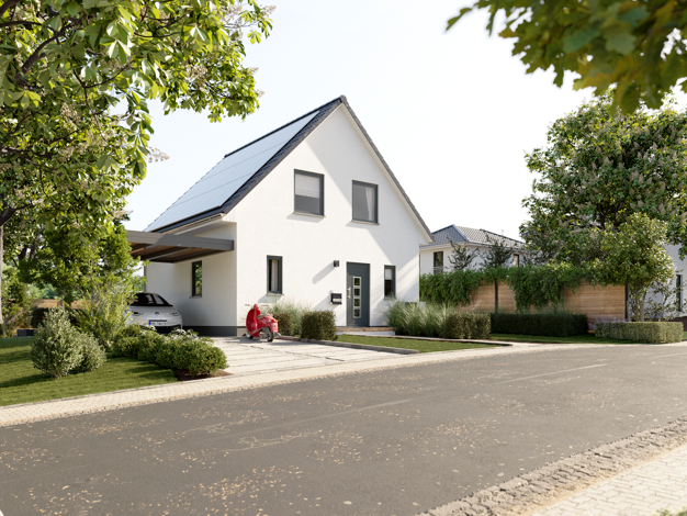Im Kaufpreis enthalten sind dieses Einfamilienhaus in KfW 40 Ausführung mit Photovoltaikanlage, das Baugrundstück, die Bodenplatte inkl. Bodengutachten, die Kompaktanlage Luft-Wasser-Wärmepumpe, eine...