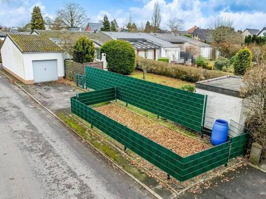Dieses sonnige Grundstück von etwa 622 m² zeichnet sich durch einen gut nutzbaren Zuschnitt und einer südwestlichen Ausrichtung aus. Es ist zum angrenzenden Fußweg mit einer Hecke eingefriedet und fü...