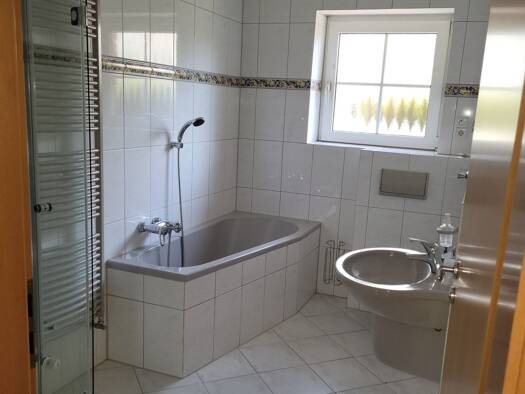 Das Haus besteht aus zwei Wohnungen mit jeweils eigenen Eingängen und großzügigen Terrassen. Die (barrierearme) Einliegerwohnung mit rund 127 qm Wohnfläche verfügt über drei Wohnräume, von denen eine...