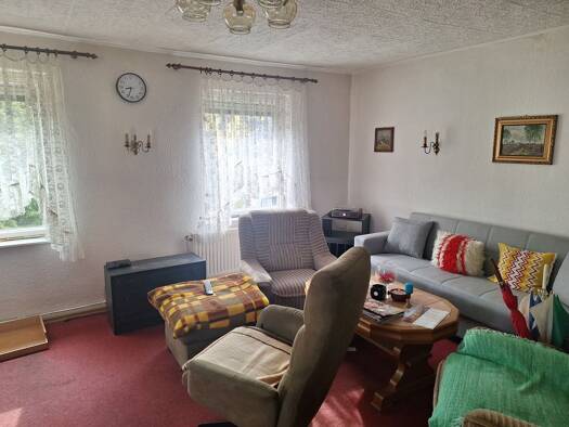 Unsere Immobilie ist ein solider massiver Bau mit einer Natursteinvollverklinkerung. Im Hausinneren befinden sich 2 Bäder, davon eines mit Sauna. Die 5 Zimmer geben variable Einrichtungsmöglichkeiten...