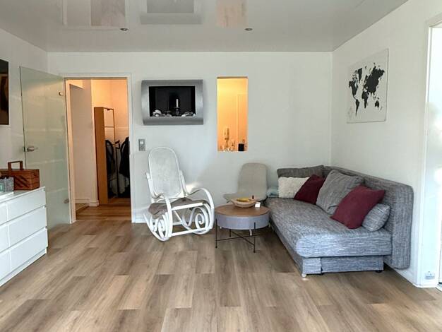 Helle Wohnung, bodentiefe Fenster im Wohnzimmer mit franz. Balkon. Ruhige Wohngegend mit sehr guter Infrastruktur. Straßenbahn, Geschäfte, kleiner Wochen- markt fußläufig zu erreichen. Gepflegte Gart...