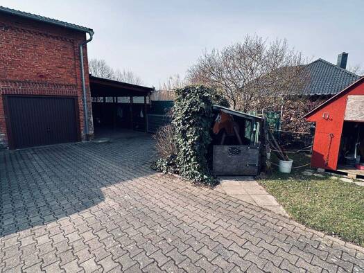 Es handelt sich um eine HÄLFTE eines Resthofes mit geräumigem Wohnbereich, Garagen, Carport, Stallungen und einem riesigen Scheunenboden. Zu dem Objekt gehört eine Koppel, die nach §34 BauGB bebauung...