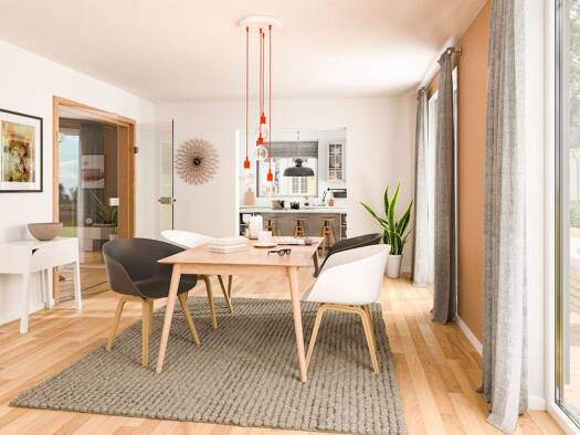 Dieses freistehende HEBA-Fertighaus mit Einliegerwohnung überzeugt durch seine moderne Ausstattung, einen zeitgemäßen Grundriss und helle, lichtdurchflutete Räume. Die Aufteilung gestaltet sich wie f...