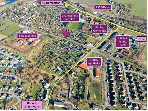 Auf einem von drei bereits real geteilten Grundstücksteilen eines insgesamt 2.591?m² großen Areals in zentraler Lage von Rövershagen liegt eine rechtskräftige Baugenehmigung zur Errichtung eines mode...