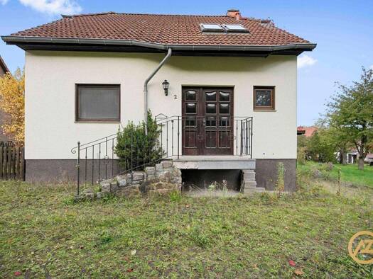 Das Einfamilienhaus ist einstöckig und voll unterkellert, mit einem ausgebauten Dachgeschoss und einer Wohnnutzfläche von 167 m². Es verfügt über einen überdachten Freisitz, ein gemauertes Schwimmbec...