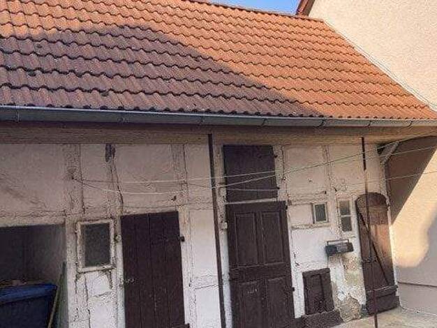 50% Anteil an einem einstöckigen Wohnhaus mit ausgebautem Dachgeschoss, teilweise unterkellert, mit einer Wohnfläche von 56 m², sowie einem Stallgebäude mit Anbauten (Werkstatt, Garage), einer Scheun...