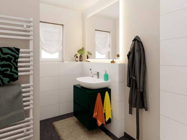 Drei Bäder auf drei Etagen schaffen besonderen Komfort und geben Ihrem Alltag eine angenehme Struktur. So starten alle entspannt in den Tag und genießen am Abend ihren eigenen Rückzugsbereich. Im Erd...
