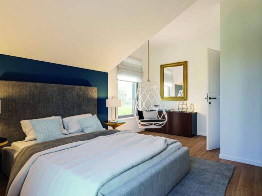 Ein echter Blickfang des Design 12 ist die Fassade, die durch ihre farbige Gestaltung zum echten Hingucker wird. Doch auch die Räume unter dem Satteldach haben auf mehr als 160 m² Wohnfläche vieles z...