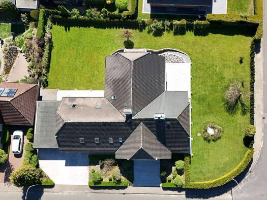 Ausstattung & Highlights ca. 203 m² Wohnfläche ca. 601 m² Grundstück ca. 35 m² Nutzfläche 7 Zimmer inkl. ausgebautem Dachgeschoss 2 Einbauküchen 2 Vollbäder mit Eckbadewanne 2 Gäste-WCs 2 Hauswir...