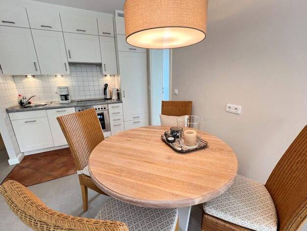 Komplett eingerichtet mit Pött un Pann... - bereits in der Ferienvermietung. Auf einem ruhigen Hintergrundstück ist hier im typisch friesischen Baustil ein modernes Doppelhaus unter Reet im KfW 55 EE...