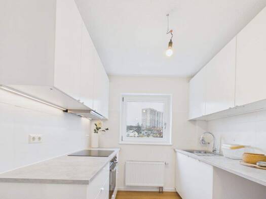 Zum Verkauf steht eine top-renovierte Wohnung im 5.OG. Sie können sofort einziehen. Die perfekt eingelassene moderne Einbauküche ist offen gestaltet und im Verkaufspreis bereits enthalten. Die Wohnbe...