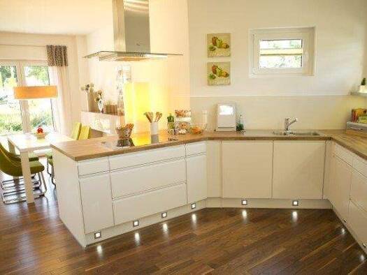 So präsentiert sich unser Design 2. Durch die geräumige Diele im Erdgeschoss gelangen Sie in den kombinierten Koch-Wohn-Ess-Bereich mit Zugang zu einer überdachten Terrasse. Ein Gäste-WC sowie ein Ha...