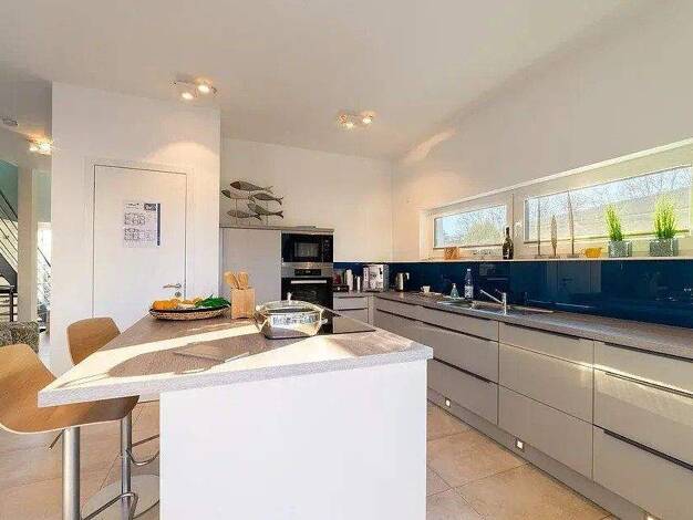 Dieses moderne Einfamilienhaus bietet eine Wohnfläche von 125 m². Mit vier Räumen verteilt auf zwei Etagen ist es ideal für kleine Familien. Im Erdgeschoss überzeugt die offene Küche mit einem großzü...