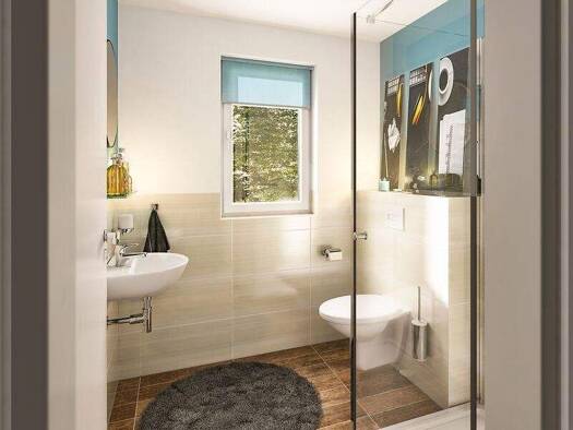 Das Mitwachshaus Flair 148 hat alles, was ein Haus zum Wohlfühlen benötigt: ein gemütliches Wohnzimmer mit hellem Essbereich und großen Fenstern, die viel Tageslicht hinein lassen. Die geräumige Küch...
