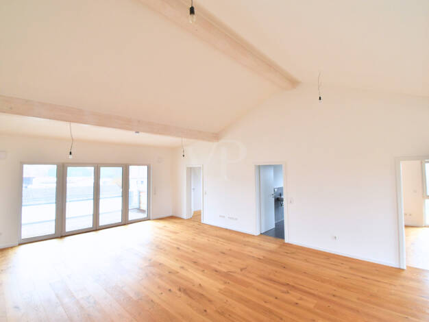 Diese attraktive Attikawohnung mit ca. 107,75 m² und 4 Zimmern befindet sich im obersten Stockwerk eines modernen 3-stöckigen KfW-40+ Holzhauses auf der rechten Seite und vereint erstklassigen Wohnko...