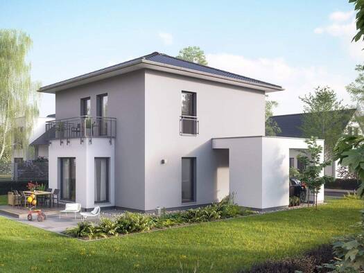 Holz ist Trumpf! Zumindest bei diesem gemütlichen Zweifamilienhaus. Mit der Holzverschalung am oberen Geschoss macht es vor allem in ländlichen Regionen eine gute Figur. Dabei wirkt es keineswegs rus...
