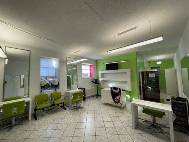 Bisher als Friseursalon genutzt, Ausstattung befindet sich noch in den Räumlichkeiten. Helle Fliesenböden. Tolle Schaufensterpräsenz. Hohe Sichtbarkeit bei Laufkundschaft. Kunden-WC ist vorhanden. Fo...