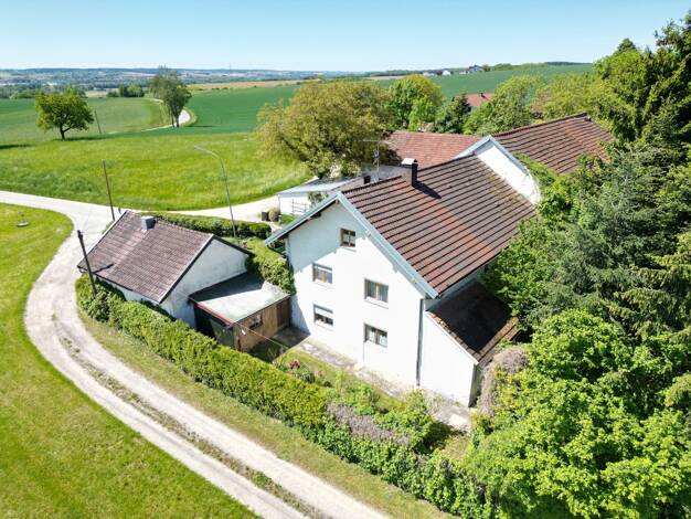 Grundstück: Das Anwesen liegt in reizvoller Lage auf einer idyllischen Anhöhe mit toller Aussicht und besticht durch seine großzügige Grundstücksfläche sowie die naturnahe Umgebung. Die Gesamtfläche ...