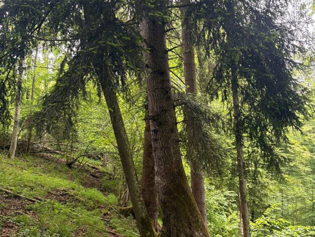 Es handelt sich um ein geschlossenes Waldstück von 7,2 Hektar Größe. Hauptbaumarten sind die Fichte und Buche. Der Bestand ist zusätzlich teils schwach gemischt mit diversen Laubbaumarten. Es herrsch...