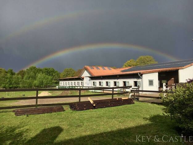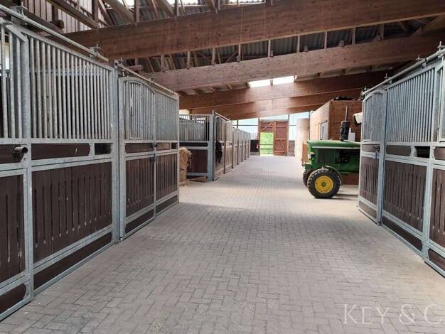 Diese wunderschöne Reitanlage, die bisher als Zuchtbetrieb geführt wurde, lässt keine Wünsche offen. Sie umfässt ca. 9,o ha Eigenland. Der Hof mit mehreren Stallungen (60 Boxen) befindet sich auf ca....