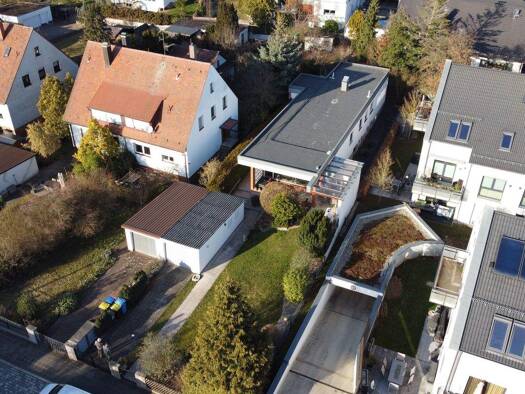 Das außergewöhnlich geschnittene Architektenhaus mit optionaler Einliegerwohnung steht in Nürnberg Eibach. Es bietet circa 315 m² Wohnfläche auf drei Etagen. Das Grundstück ist 1.230 m² groß und gren...