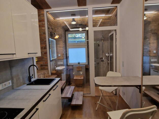 Das Wohn-/Bürohaus auf dem vorderen Grundstücksteil besteht aus drei Etagen mit jeweils einer ca. 60 m2 großen Wohn-/Büroeinheit inklusive Küche und Bad. Die Raumstruktur dieses Gebäudes eignet sich ...