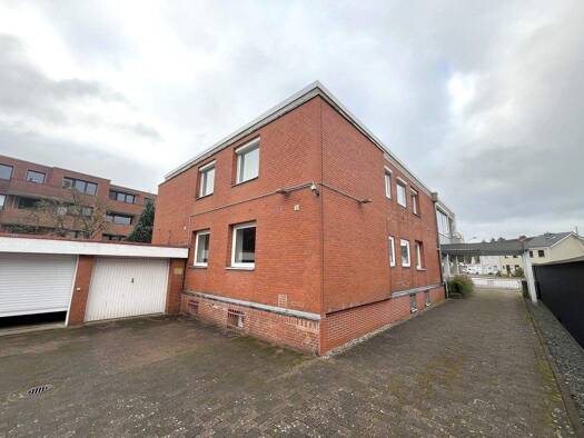 Die Bürofläche, erbaut im Jahr 1983, bietet eine repräsentative Fassade mit rotem Klinker und liegt in einer attraktiven Umgebung mit Wohnbebauung, Praxen und Büros im näheren Umfeld. Der Eingangsber...