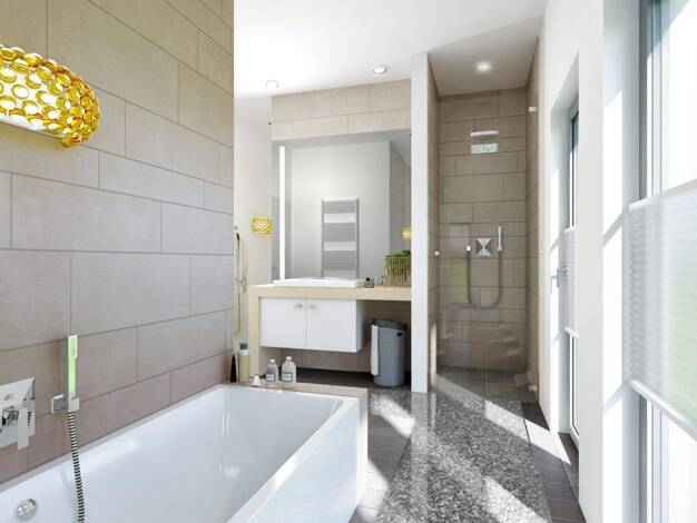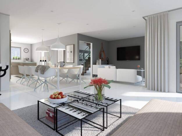 Unser Einfamilienhaus EDITION 123 SD 25 bietet durch die zahlreichen, bodentiefen Fensterelemente im Erdgeschoss nicht nur lichtdurchflutete Räumlichkeiten, sondern dadurch auch ein einmaliges Wohnge...