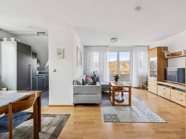 Der durchdachte Grundriss verbindet Offenheit mit Geborgenheit. Der Wohnbereich mit bodentiefen Fenstern führt zu einer beeindruckenden Aussicht auf dem Balkon - ein Ort für Weite und klare Gedanken....