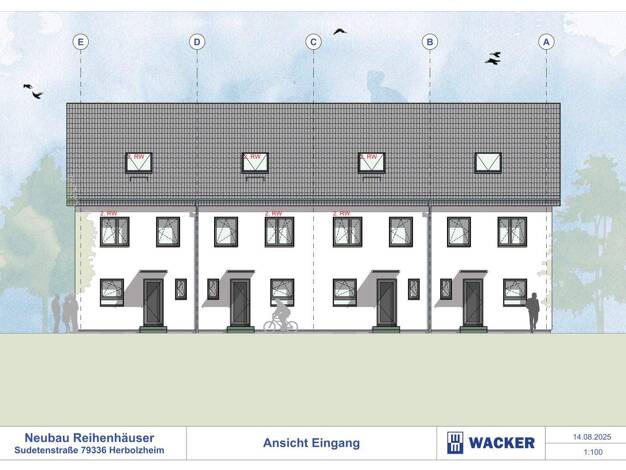 In der beliebten Wohnlage von Herbolzheim, Sudetenstraße, entstehen vier moderne Reihenhäuser mit jeweils 125,46 m² Wohnfläche und eigenem Garten, die höchsten Ansprüchen an Qualität, Komfort und Ene...