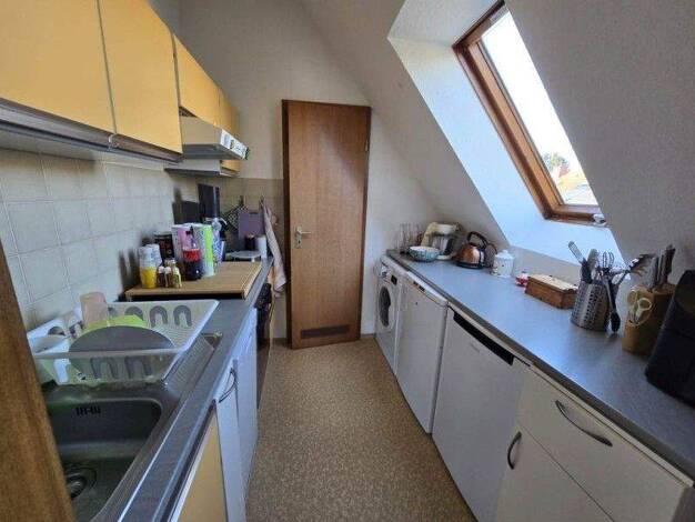 3 helle Zimmer mit Tageslichtbad und Wohnküche mit Abstellraum. Mehr Platz im Dachspitz und Keller.