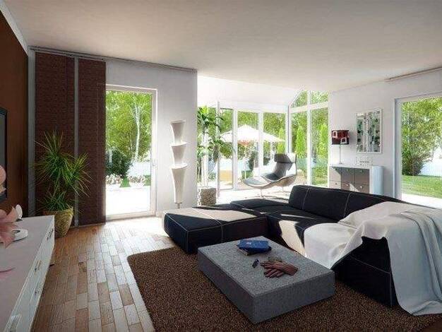 Der Name „Flair 110“ steht für 110 Quadratmeter Wohnerlebnis: Ein Blickfang sind die bodentiefen Fenster, die den Wohnbereich mit viel Licht durchfluten. Hell, gemütlich und weitläufig – genügend Rau...