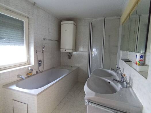 Doppelhaushälfte zentral gelegen, mit Garage die Unterkellert ist. Keine Zentralheizung, keine Warmwasserversorgung. Nachtspeicheröfen. Umbau 1967 und in den 80er Jahren.