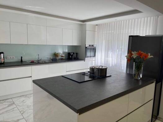 Die Wohneinheit im Erdgeschoss erreicht man durch den zentralen Eingangs- und Treppenbereich. Dort ist auch der Personenaufzug integriert. Die Wohnung selbst besticht durch eine modern-gewichtete Rau...