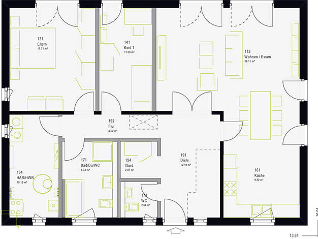 Ausreichend Platz für eine Familie bietet unser Bungalow 11.01. Dieses Haus überzeugt durch seine tollen Raumgrößen und der exklusiven Ausstattung. Als Marktführer im Bereich Ausbauhaus profitieren S...