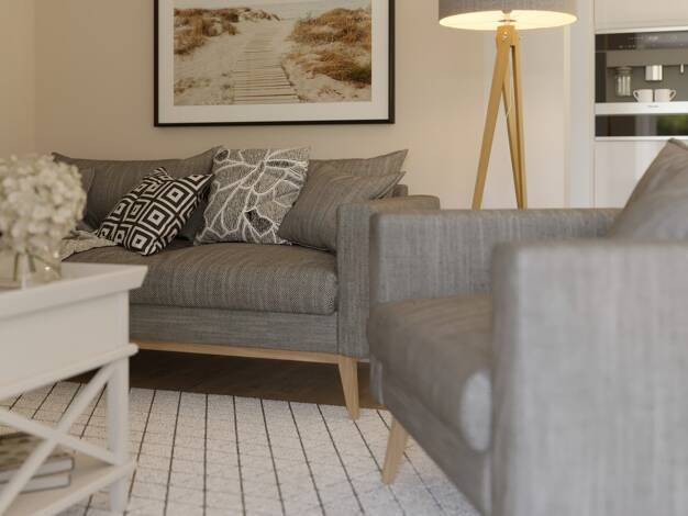 Das Traumhaus mit dem Naturerlebnis Die windgeschützte und einladend gestaltete Terrasse bildet das räumliche und optische Zentrum dieses extravaganten Bungalows. Die geschickte Raumaufteilung erlaub...