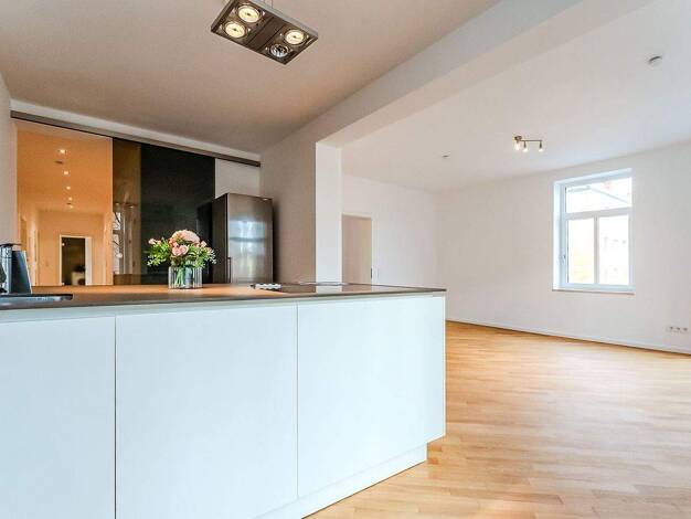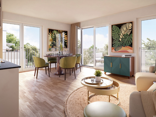 Wie ein grünes Wohnzimmer unter freiem Himmel erweitert die großzügige Terrasse diese 3-Zimmer-Wohnung im Erdgeschoss und macht sie zu einem Ort, an dem innen und außen nahtlos ineinander übergehen. ...