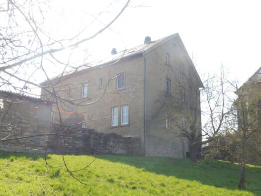 Das Grundstück ist mit einem ehemaligen Schulgebäude (Teil-KG, EG, OG und nicht ausgebautes DG) in Massivbauweise bebaut. Östlich des Gebäudes befindet sich die Garage mit offener Holzlege. Die Gebäu...