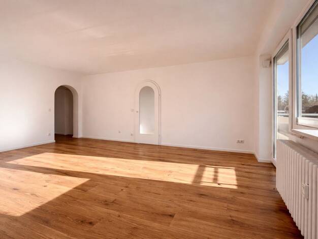 Diese helle und geräumige Wohnung liegt im 9. OG und wurde 2024 mit gehobenen Materialien neu saniert. Ein absolutes Highlight ist der Ausblick in Richtung Alpen, welchen man über die überwiegend nie...