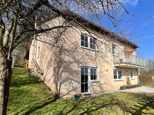 Dieses außergewöhnlich großzügige Wohnhaus präsentiert sich im fränkischen Landhausstil und überzeugt durch eine harmonische Architektur mit hochwertigen, natürlichen Baumaterialien. Besonders hervor...