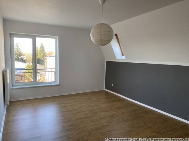 Verkauft wird eine Dachgeschosswohnung im 2. OG. Sie besteht aus vier hellen Zimmern in Ost-West- Ausrichtung. In der unteren Etage gehen alle Zimmer vom geräumigen Flur ab. Der Flur bietet die Mögli...